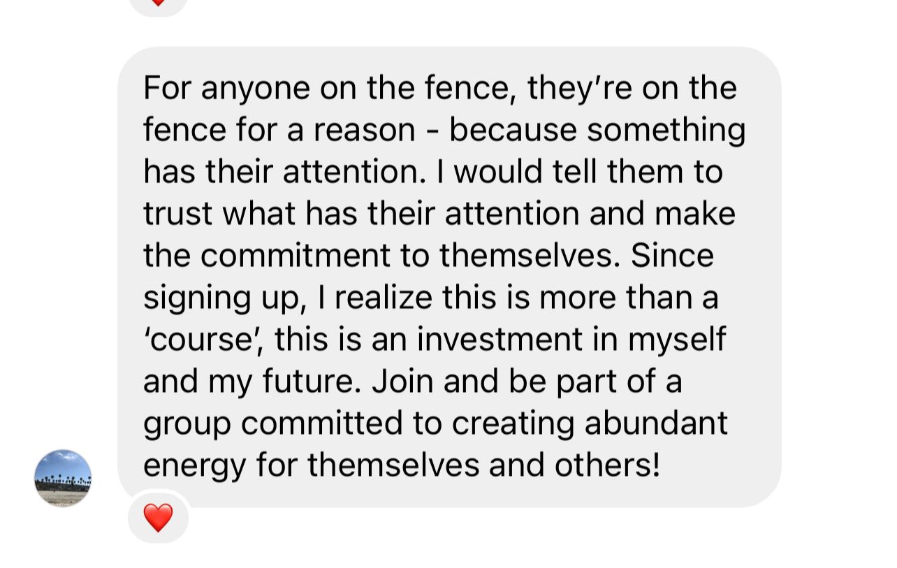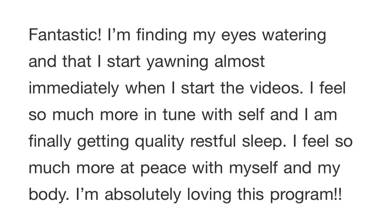 This preview is only meant to give a little taste of what's inside. You won't be able to feel the full effect of a comprehensive program. Trust that these tiny little movements create huge shifts.
